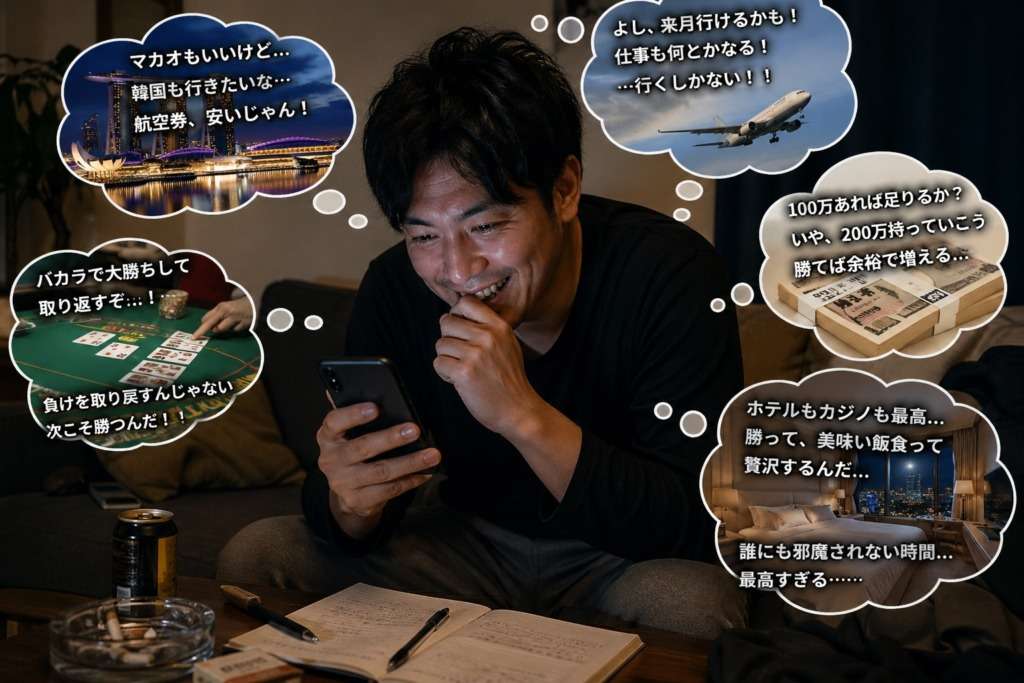 余暇の旅行プランを考えている時、人は誰でも幸福感を覚えるだろうが、ギャンブル旅行の計画は放出されるドーパミンが桁違いで、未確定の勝利を想像するだけで、自分が勝利と栄光を手に入れ、全能感で満たされてしまう。